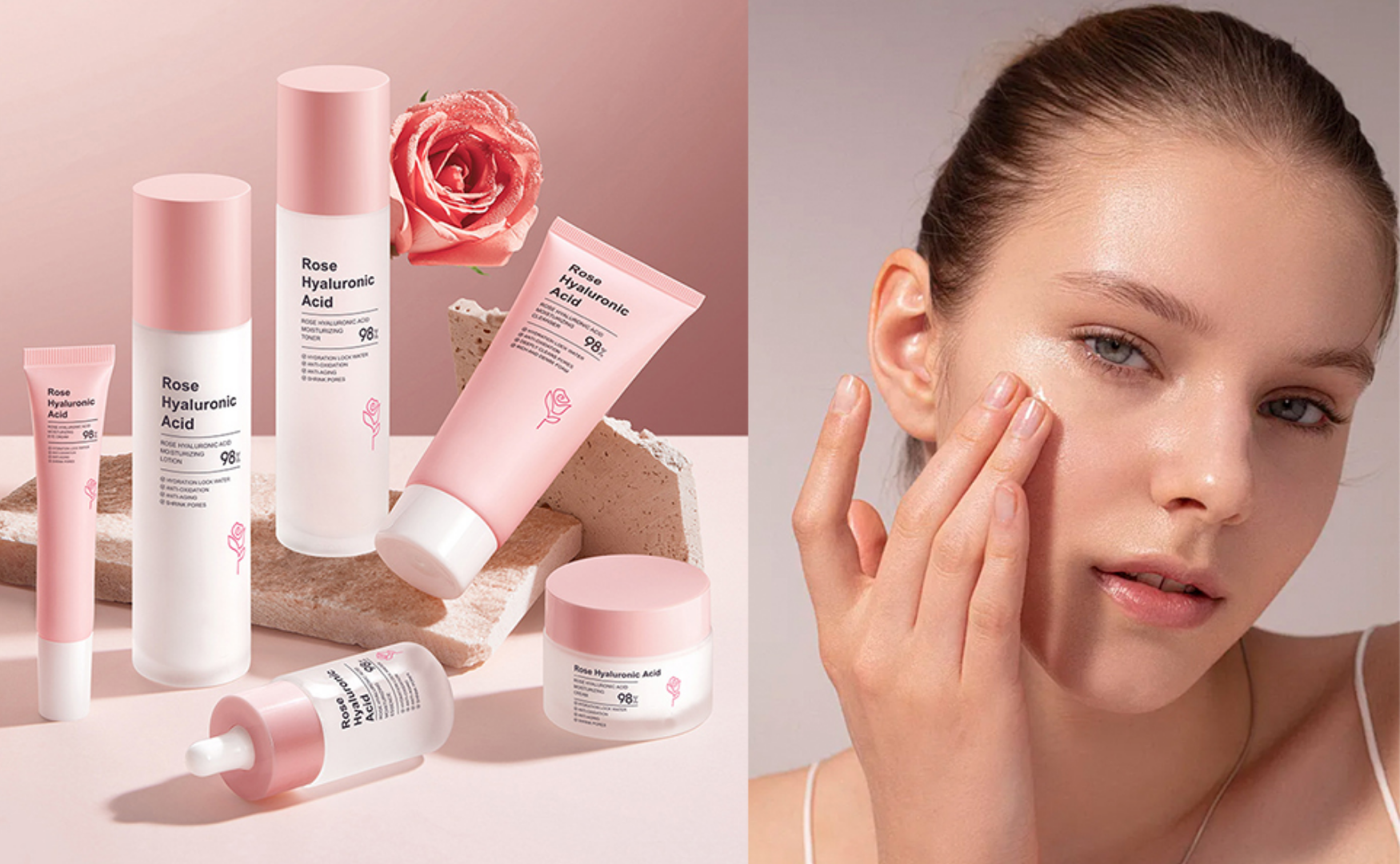 ✨ Rutina Completa Rose Hyaluronic Acid - Limpiador, Tónico, Suero y Crema Hidratante