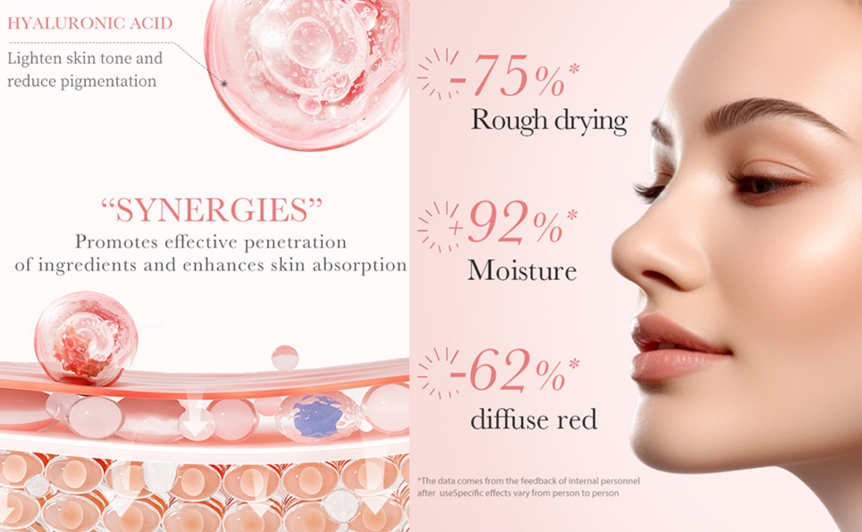 Tecnología de penetración triple para hidratación donde realmente importa. La esencia con moléculas pequeñas se absorbe lentamente en la superficie, el ácido hialurónico de peso medio penetra la capa media con hidratación profunda y delicada, mientras los activos llegan hasta la capa profunda para cuidado desde el interior. Resultado: fondo suave y hermoso con hidratación duradera de 24 horas. Ciencia avanzada al servicio de tu belleza natural.